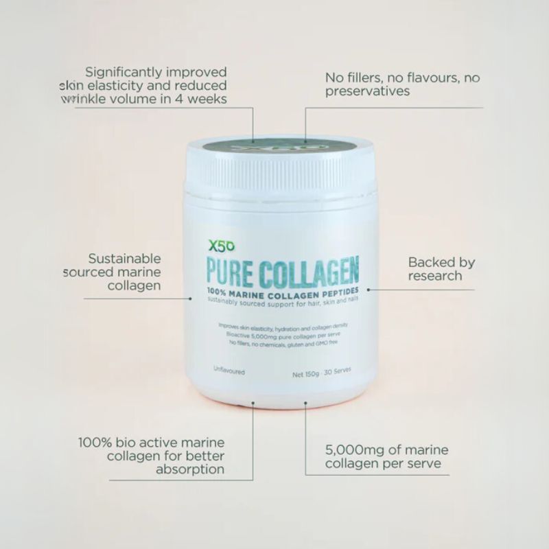 X50 doesn’t overcomplicate things, offering simple and effective X50 Green Tea products that can support your health and well-being. Their flagship product, X50 Green Tea + Resveratrol, offers antioxidants, resveratrol, vitamin C and more to support your energy and health goals. If you’re working towards specific goals, X50 Showtime Thermoshred supports your performance and energy with a formula that contains green tea, caffeine, acetyl L-carnitine and more. For your outer health and beauty routine, X50 Pure Collagen delivers 100% pure marine collagen peptides to support your goals.