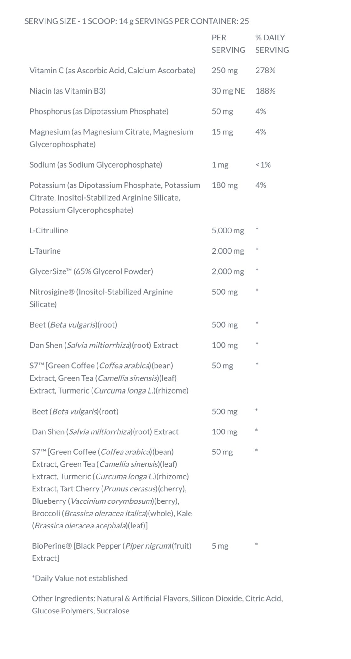 Fortified with key ingredients known to boost nitric oxide, feel the effects of an epic pre-workout minus the caffeine with Full as F*ck from 5% Nutrition. With vitamin C, B vitamins, magnesium, Glycersize, superfood extracts and more, reap the rewards of this pumping stim-free pre-workout without the effects of caffeine while working hard towards those body goals.