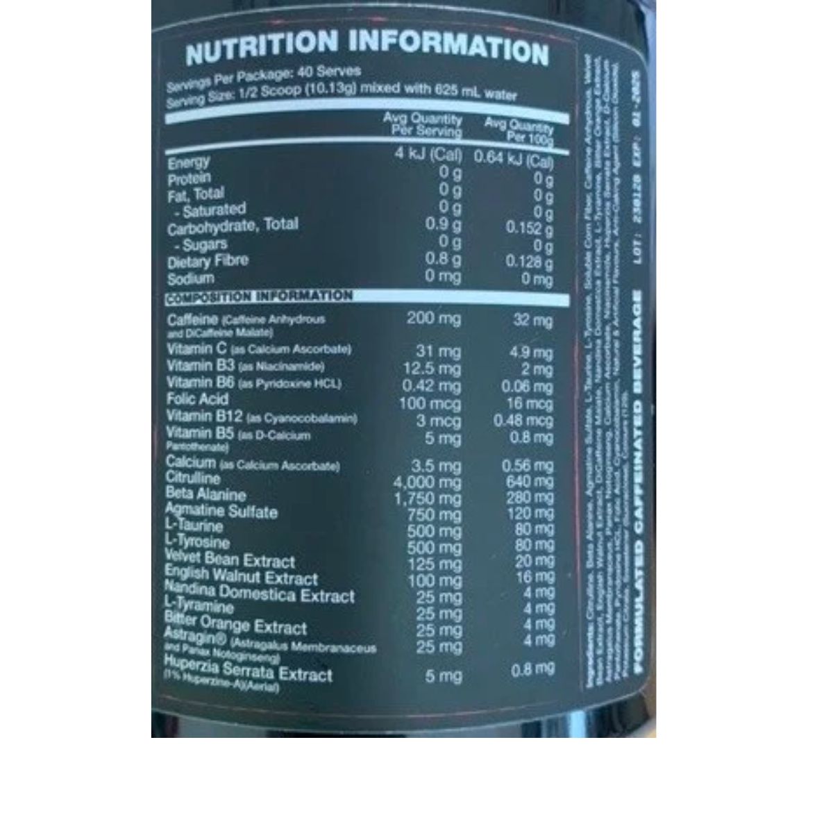 - Caffeine blend for amplified energy