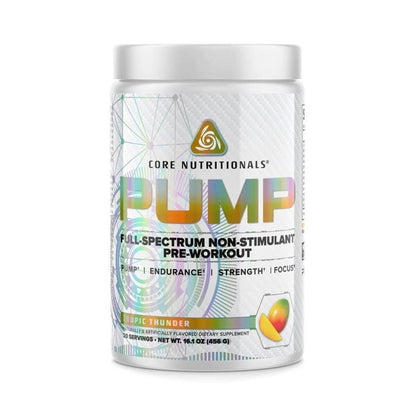 Is your current pre-workout failing to get the job done? Are you sensitive to stimulant-fuelled pre-workouts? It might be time to switch to a pump pre-workout. The Core Nutritionals Pump is calling your name! This cutting-edge combination of carefully calculated ingredients can help you improve your focus, strength and endurance while increasing your blood flow.