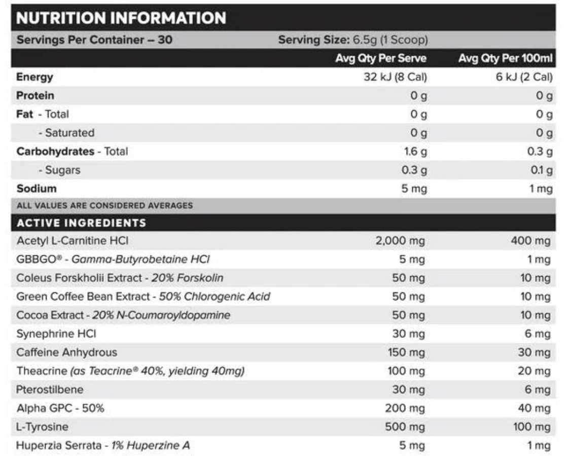 So, what can you expect from Muscle Nation's Destiny? Let's take a closer look at what's inside the tub. This power-packed formula contains Caffeine, Pterostilbene, L-Carnitine, GBBGO, Coleus Forskholii, Cocoa Extract & Green Coffee Bean Extract, Alpha GPC, Huperzine A, Velvet Bean Mucuna Pruriens and Tyrosine. Together, these ingredients help you drive you closer to your fitness goals.