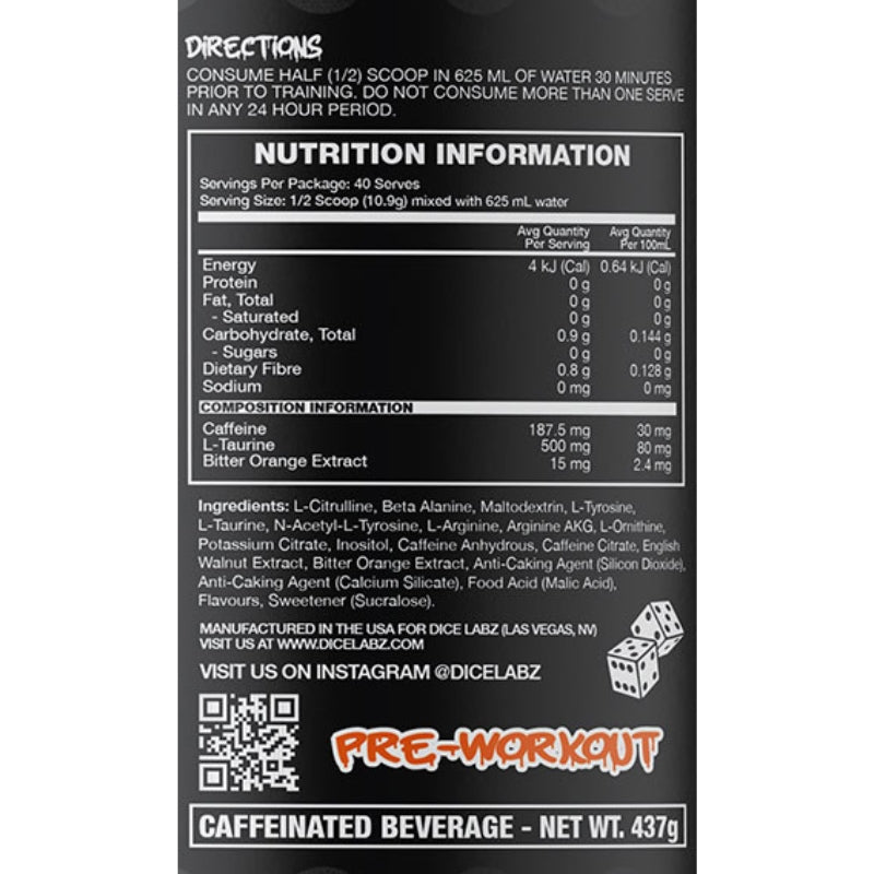 Consume 1/2 scoop in 625ml of water 30 minutes prior to training. Do not consume more than one serve in a 24 hour period.