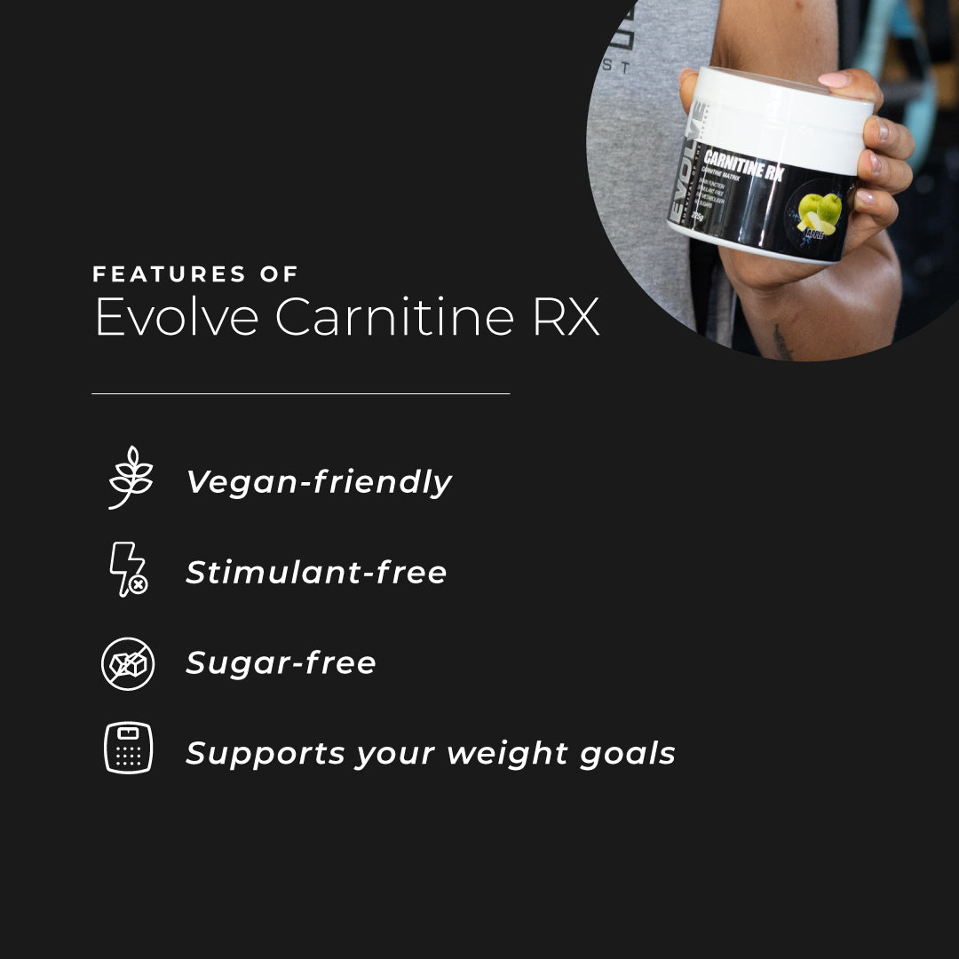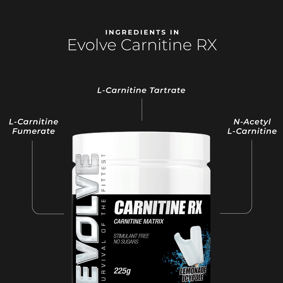 Evolve Carnitine RX utilises three forms of carnitine, which is an amino acid naturally present in many foods. Carnitine is synthesised in the liver, kidney and brain from the amino acids lysine and methionine and can play a massive role in energy production. Carnitine works by transporting certain chemicals into the mitochondria to be oxidised for energy, which can play a role in helping you achieve your body goals.