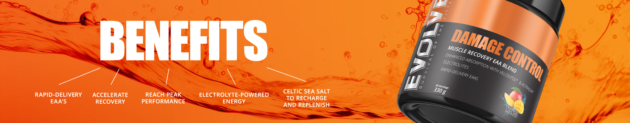 Evolve Damage Control is a recovery matrix with an instant EAA formula. This formula harnesses the power of PeptoPro, a hydrolysed casein protein that is more readily absorbed than generic casein; this ingredient supports muscle recovery, promoting accelerated replenishment of muscle stores after exercise.