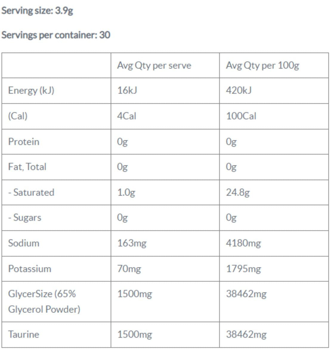 Mix 1/4 tsp (1g) in 200mL of water and consumed 30 minutes prior to exercise of training.
