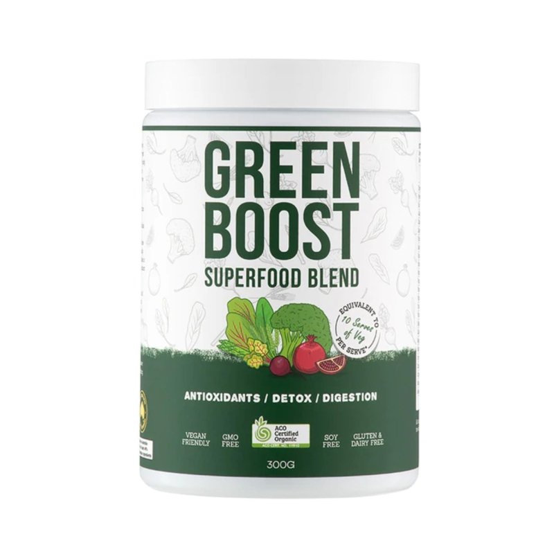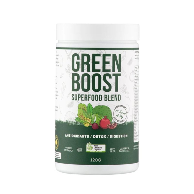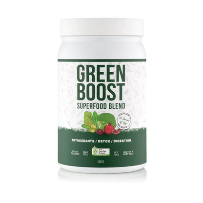 Green Boost is a daily superfood blend created by naturopaths to deliver powerful plant-based nutrition in every scoop. Packed with antioxidants, prebiotics, and digestive enzymes, it’s your all-in-one formula for energy, immunity, and gut support minus the fake sweetness or chalky texture.