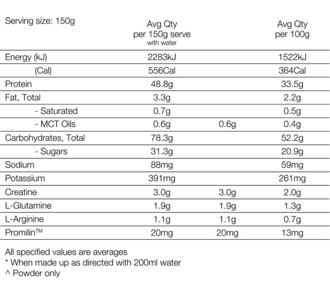 Calorie content may vary slightly between flavours, but each serve is calorie-dense, designed specifically to help you reach your daily energy and macronutrient targets for muscle growth.
