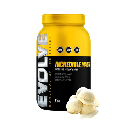 Evolve Incredible Mass is a high-calorie mass gainer designed for individuals looking to build size and strength. It contains a blend of protein, carbohydrates, and healthy fats to support recovery, performance, and muscle growth.