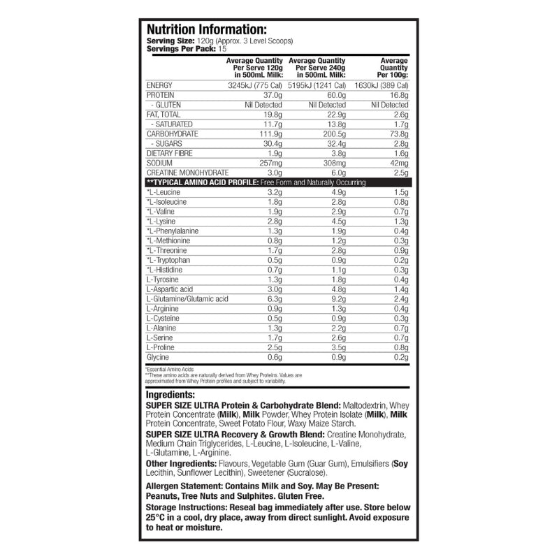 MAX’S Super Size Ultra is built for lifters chasing maximum size. Each serve of this mass gainer protein delivers the calories, protein, and nutrients required to fuel heavy training, stimulate growth, and support rapid recovery. Whether you’re bulking steadily or pushing for mass fast, this formula adapts to your training demands.