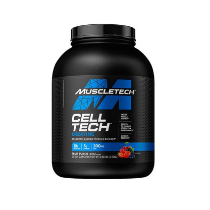 Muscletech Cell Tech is a hardcore Creatine formula designed to support muscle mass and strength. Intended for anybody looking to pack on mass, this scientifically formulated formula contains HPLC-Creatine Monohydrate and Creatine Hydrochloride to support strength, muscle volumisation and performance.