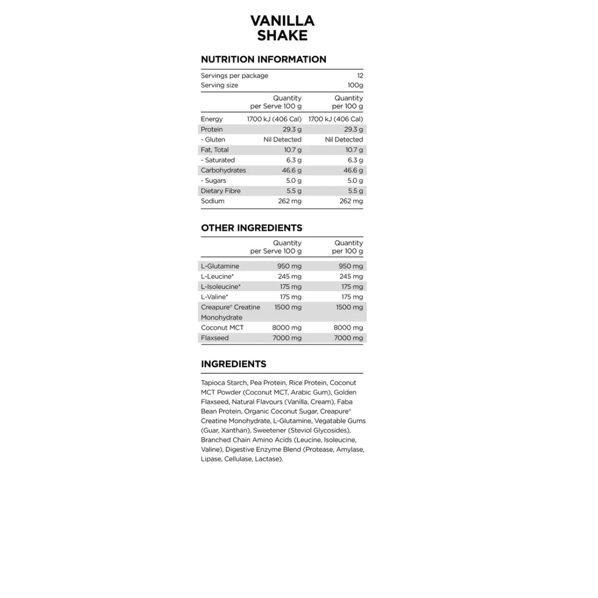 Natural Mass contains an ideal ratio of premium quality ingredients, including Coconut MCTs, CreaPure'® Creatine Monohydrate, Fermented L-Glutamine, and a complete amino acid profile to support muscle growth and recovery. PranaOn's incredible Natural Mass formula also contains over 6g of dietary fibre in each serve and added digestive enzymes to support protein absorption and utilisation. With over 45g of carbohydrates, 30g of plant-based protein and 10g of healthy fats per serving, this nutrient-rich formula is loaded with 375 calories per serve!