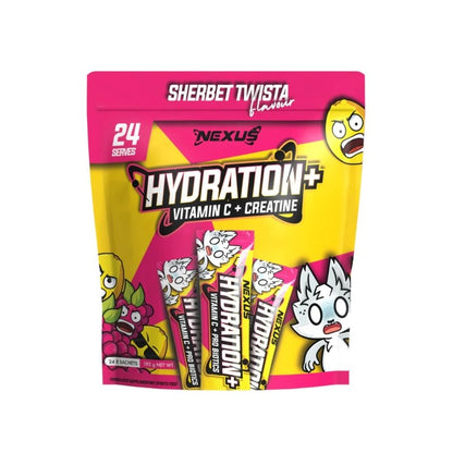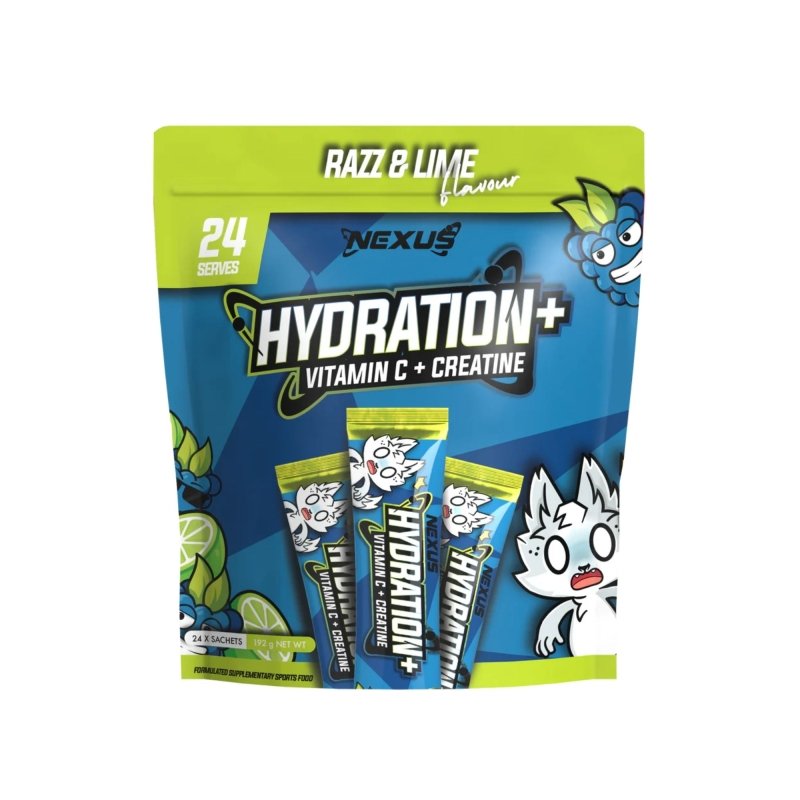 Nexus Sports Nutrition has dipped their toes into the hydration supplements (supps) game with this latest innovation: Hydration+. This cutting-edge hydration formula is designed to support your overall wellness and performance. Packed with essential ingredients like electrolytes, vitamin C, taurine, inulin, creatine, and Senactiv®, this cutting-edge formula helps to support hydration in unique ways.