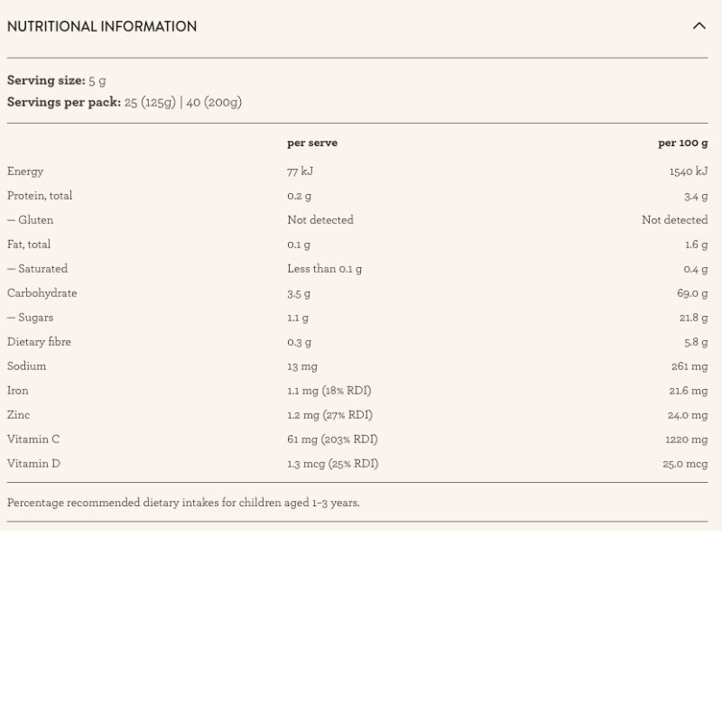 With its sweet berry flavour and smooth texture, Berry Immune blends seamlessly into smoothies, porridge, yoghurt, or baked treats, making it an effortless way to add immune-supporting nutrients to your child’s daily diet. Suitable for ages 12 months and up, it’s a simple, tasty addition to your family’s wellness routine.