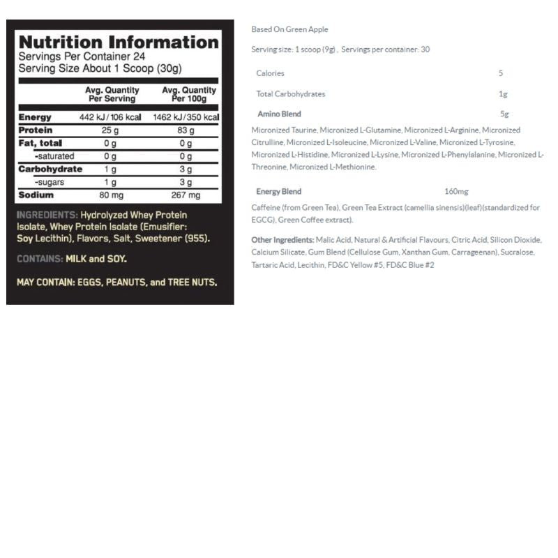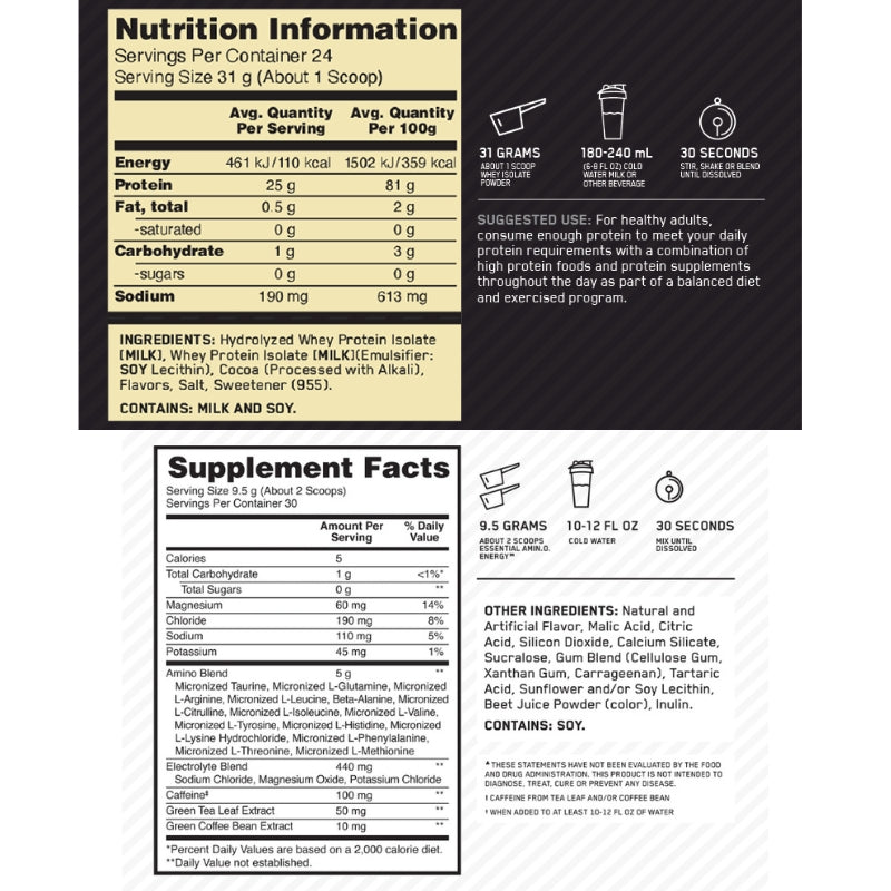 Elevate your performance and recovery with the ultimate combination of Optimum Nutrition's Gold Standard 100% Isolate and Amino Energy. This bundle is crafted to fuel your energy, focus, and muscle recovery—perfect for athletes and fitness enthusiasts aiming to get the most out of every workout.