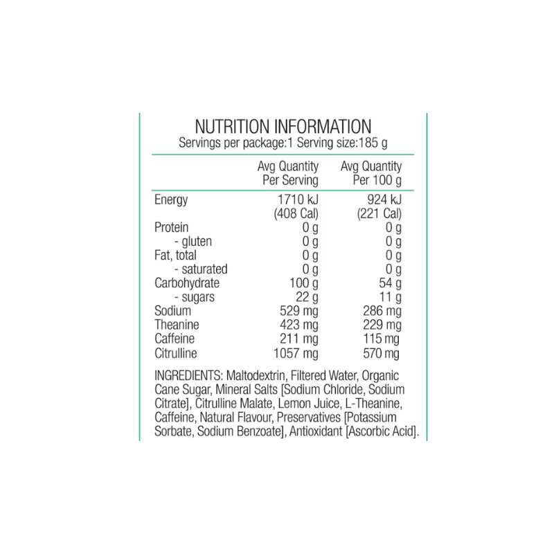 The addition of over 200mg of caffeine paired with L-theanine provides a more controlled energy lift, helping support focus, alertness, and decision-making during training and competition, without the sharper peaks often associated with caffeine alone. With 529mg of sodium per pouch, it also helps replace electrolytes lost through sweat, supporting hydration during longer or high-intensity sessions. Citrulline malate is included to support blood flow and nutrient delivery, contributing to endurance and recovery as part of a structured fuelling strategy.