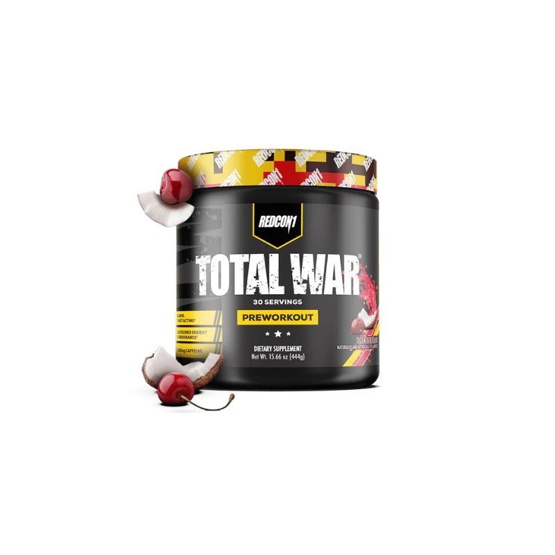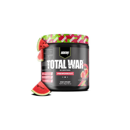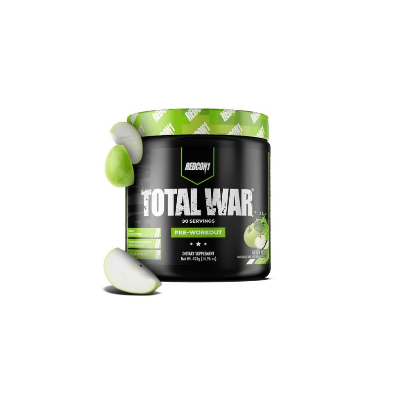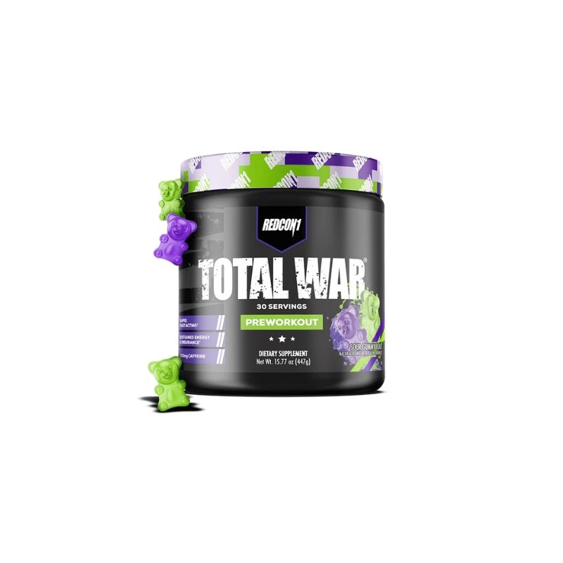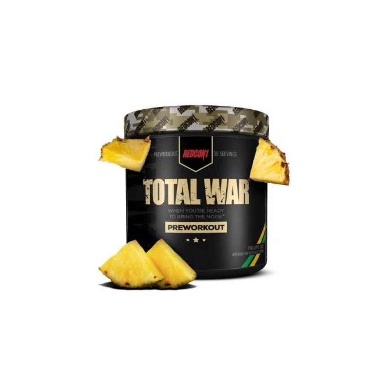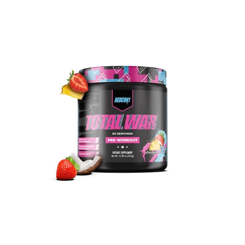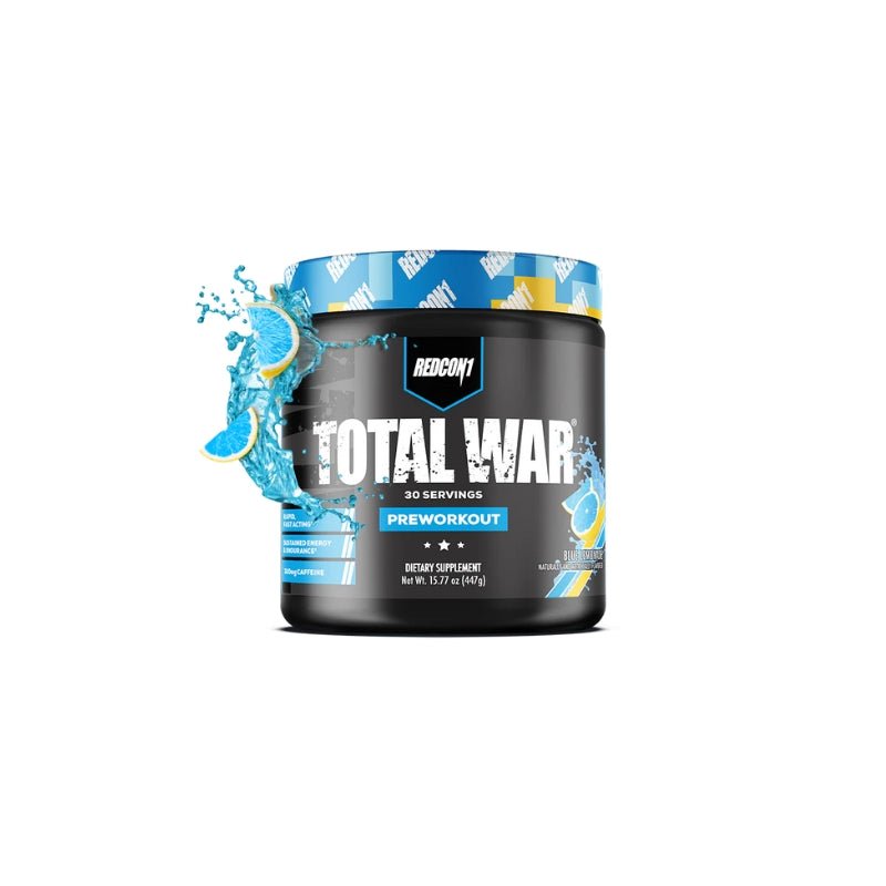 Redcon1 Total War is a military-themed pre-workout that supports focus, energy, and performance. This all-in-one formula combines a blueprint of stimulants and amino acids along with N.O. compounds that can spike your energy while aiding improved muscle pumps. Whether you train before work or school, in the middle of the day, or later in the evening, Total War can fuel your performance needs.