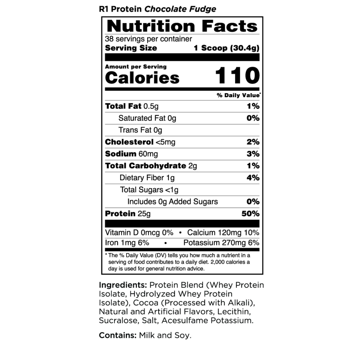 Tasty Shakes: Mix one heaping scoop of R1 Protein with approx. 8oz. of water, milk, or your favorite beverage in a shaker cup or glass with spoon.
