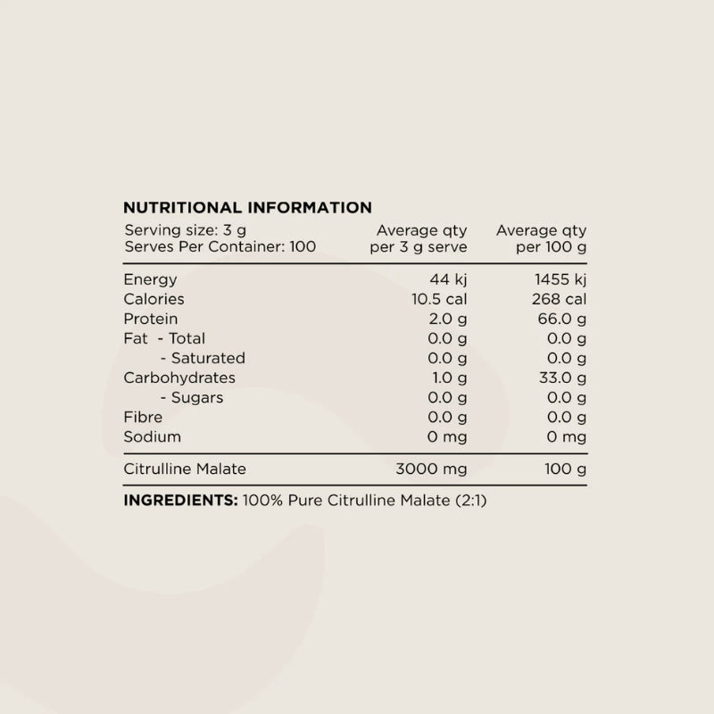 Consume 3-8g of CITRULLINE MALATE before exercise to help boost workout performance, pumps and reduce muscle soreness