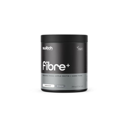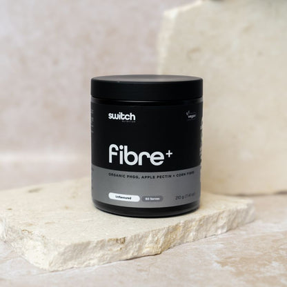 Fibre+ by Switch Nutrition is a vegan-friendly, soluble fibre supplement designed to support healthy digestion and a thriving microbiome. With a unique blend of Organic PHGG, Apple Pectin, and Corn Fibre, this unflavoured powder is easy to mix into your routine, offering a simple, natural way to feel more balanced, and more regular every day.
