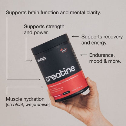 Flavoured Creatine by Switch Nutrition delivers high-quality, micronised Creatine Monohydrate to support strength, lean muscle, energy, and recovery, now in refreshing, easy-to-drink flavours. Whether you're training hard or just staying active, this essential performance support fits effortlessly into any routine.