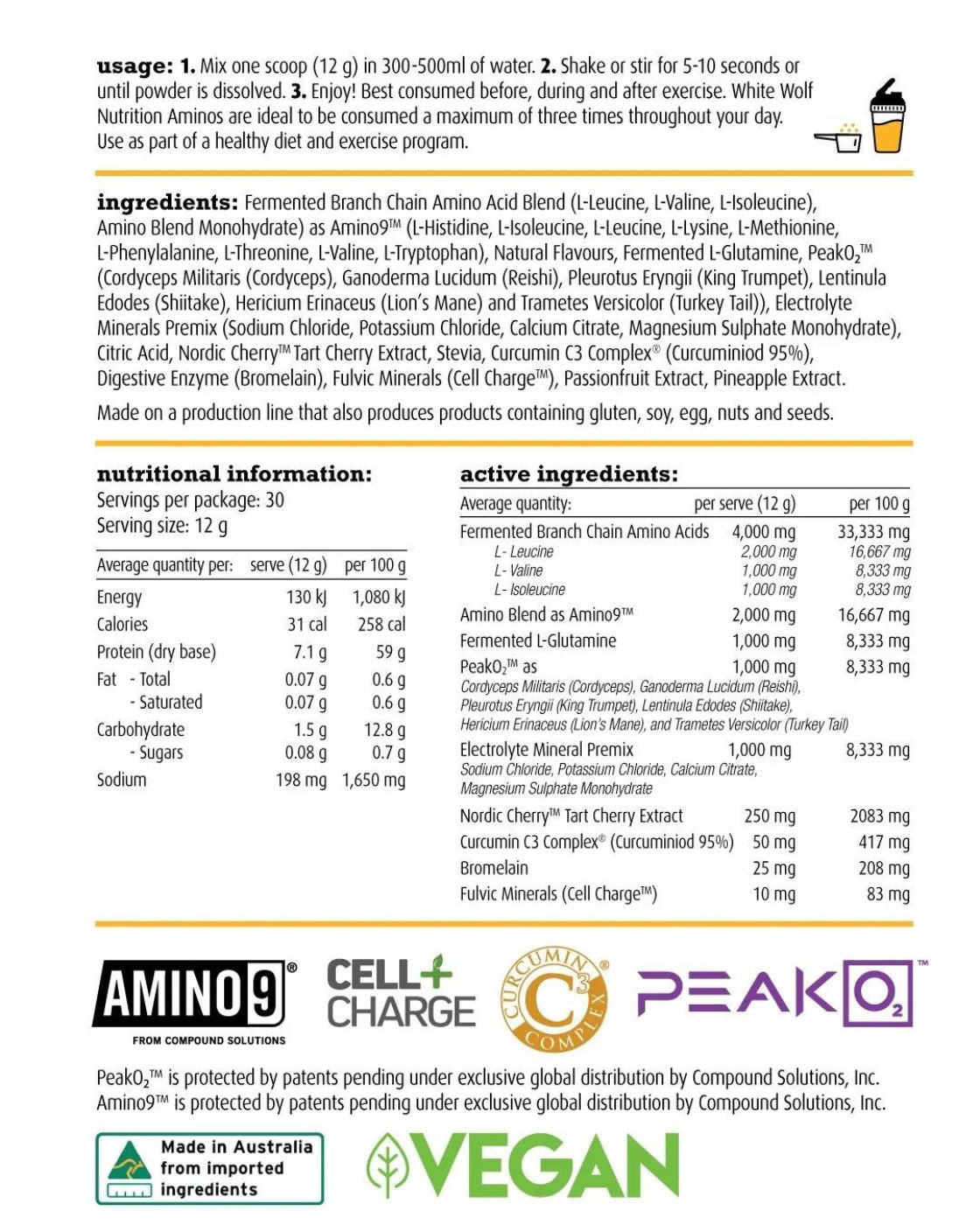 Containing Essential Amino Acids (EAAs), Branched-Chain Amino Acids (BCAAs) and an organic mushroom blend, White Wolf Nutrition's powerful combination of ingredients has been carefully formulated to deliver all 9 EAAs (Amino9TM) and the 3 BCAAs required to support muscle protein synthesis and recovery after an intense training session.