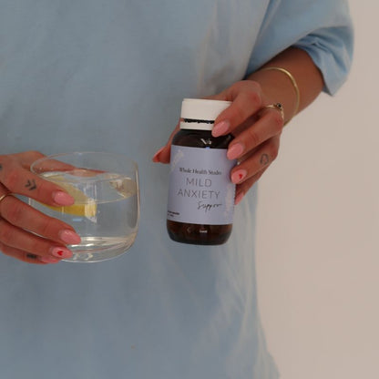 Whole Health Studio’s Mild Anxiety Support is a gentle, herbal blend designed to relieve mild anxiety, reduce stress, and promote relaxation. Made with traditional Western herbal remedies, it helps calm the mind and support restful sleep.